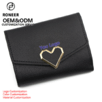 The Wholesale Custom Women’s PU Leather Mini Heart Wallet from RONEER has been designed with a fashionable yet practical style that emphasizes both elegance and durability. Crafted from high-quality PU leather, the wallet has been shaped into a slim, compact form that allows it to be carried easily in small handbags or clutched by hand. A delicate tassel accent has been added to enhance its charm, while a soft polyester lining has been integrated for long-lasting use.
